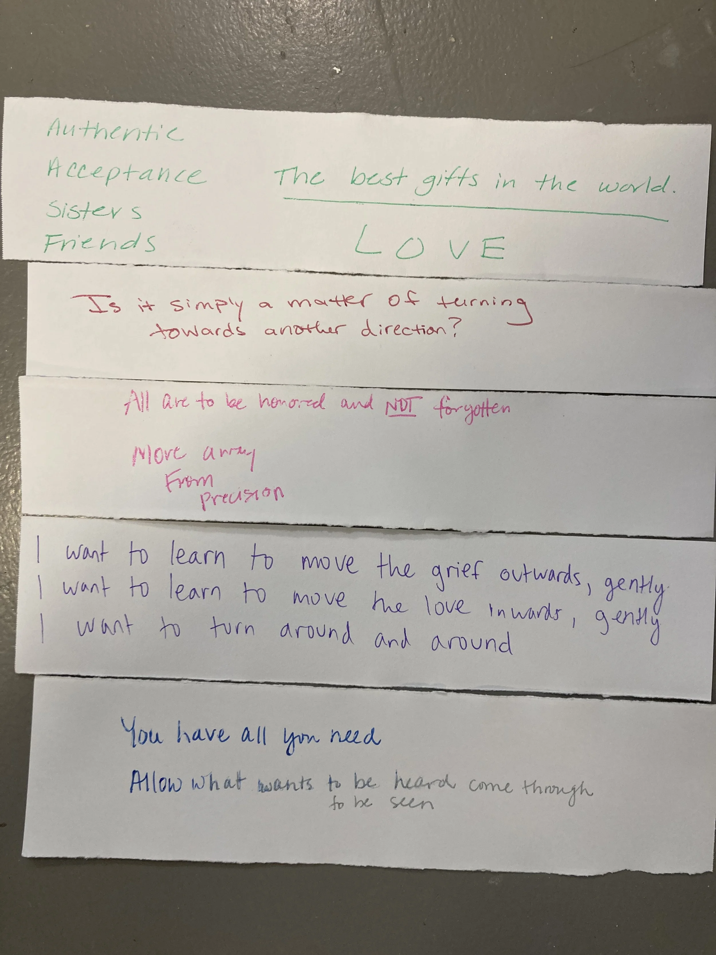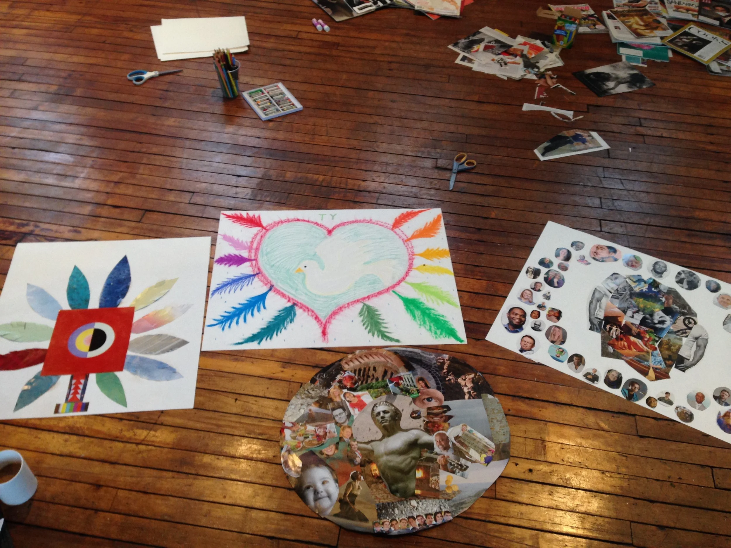 A one hour guided creative exploration. Utilizing a variety of art modalities, including painting, clay work, movement, sounding, collage and writing, you will have the opportunity to listen to what your art- your creative wisdom- has to say.
